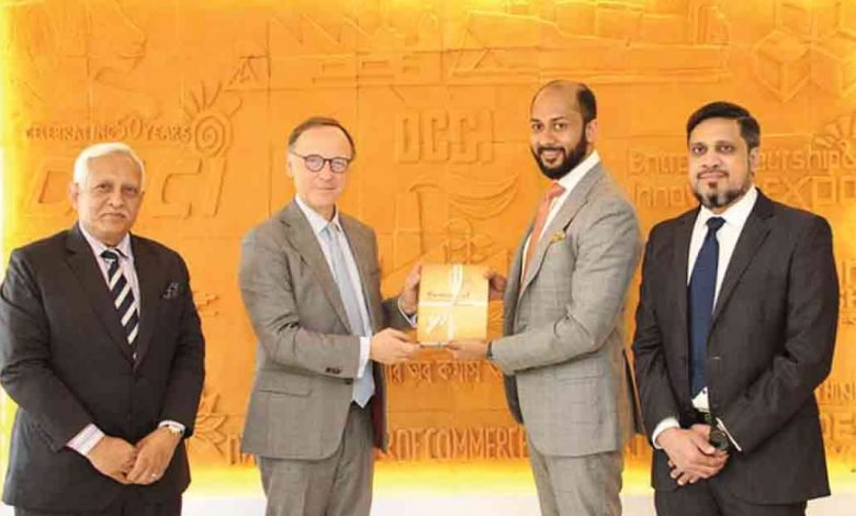 ঢাকা চেম্বার অব কমার্স অ্যান্ড ইন্ডাস্ট্রির (ডিসিসিআই) সভাপতি রিজওয়ান রাহমানের সঙ্গে বাংলাদেশে নিযুক্ত নেদারল্যান্ডসের রাষ্ট্রদূত হ্যারি ভ্যারওয়ে সৌজন্য সাক্ষাৎ করেছেন। সম্প্রতি ঢাকা চেম্বার কার্যালয়ে আয়োজিত এ সাক্ষাৎকার অনুষ্ঠানে ডিসিসিআই ঊর্ধ্বতন সহসভাপতি এনকেএ মবিন, সহসভাপতি মনোয়ার হোসেন এবং নেদারল্যান্ডস দূতাবাসের ফার্স্ট সেক্রেটারি বাস ব্ল্য এ সময় উপস্থিত ছিলেন।